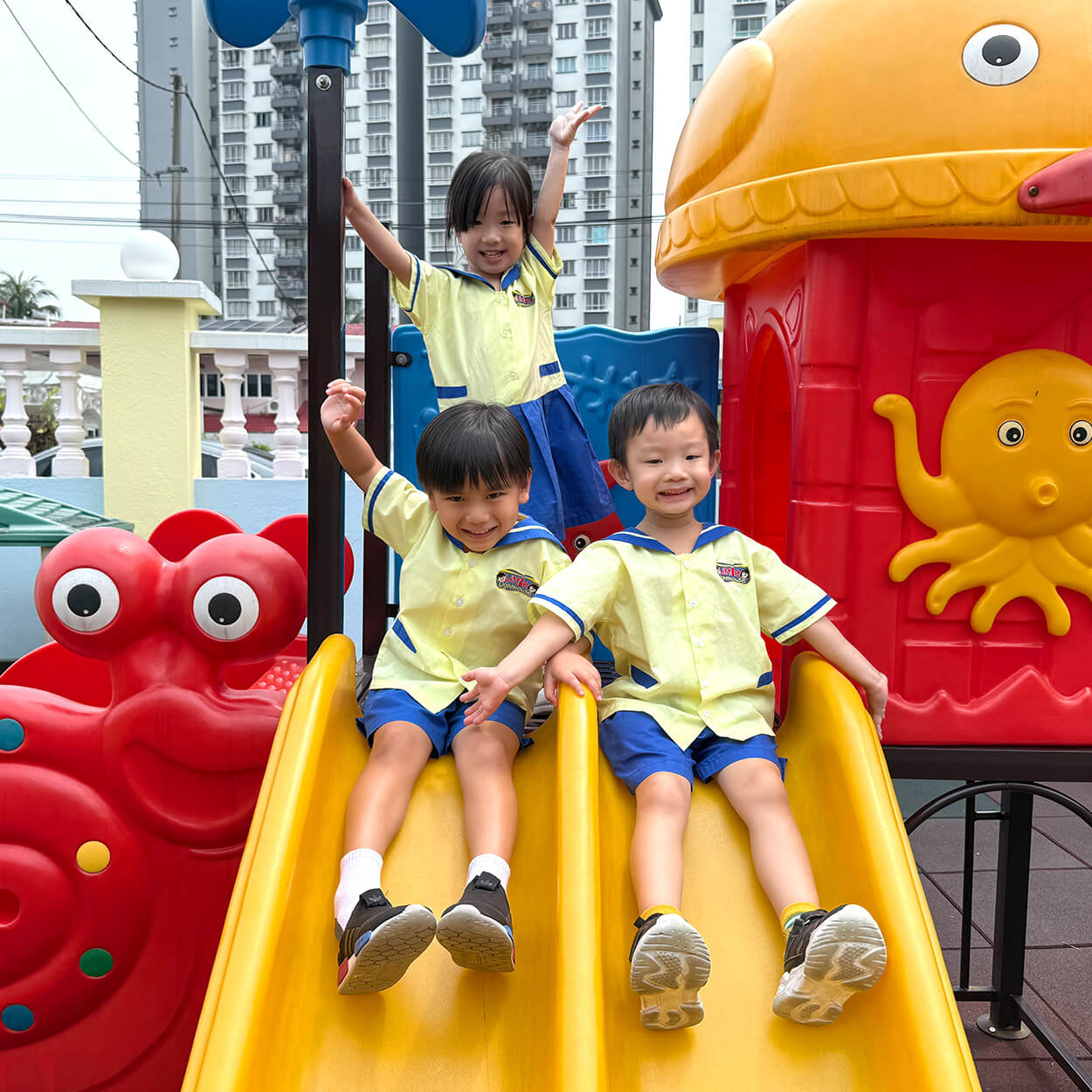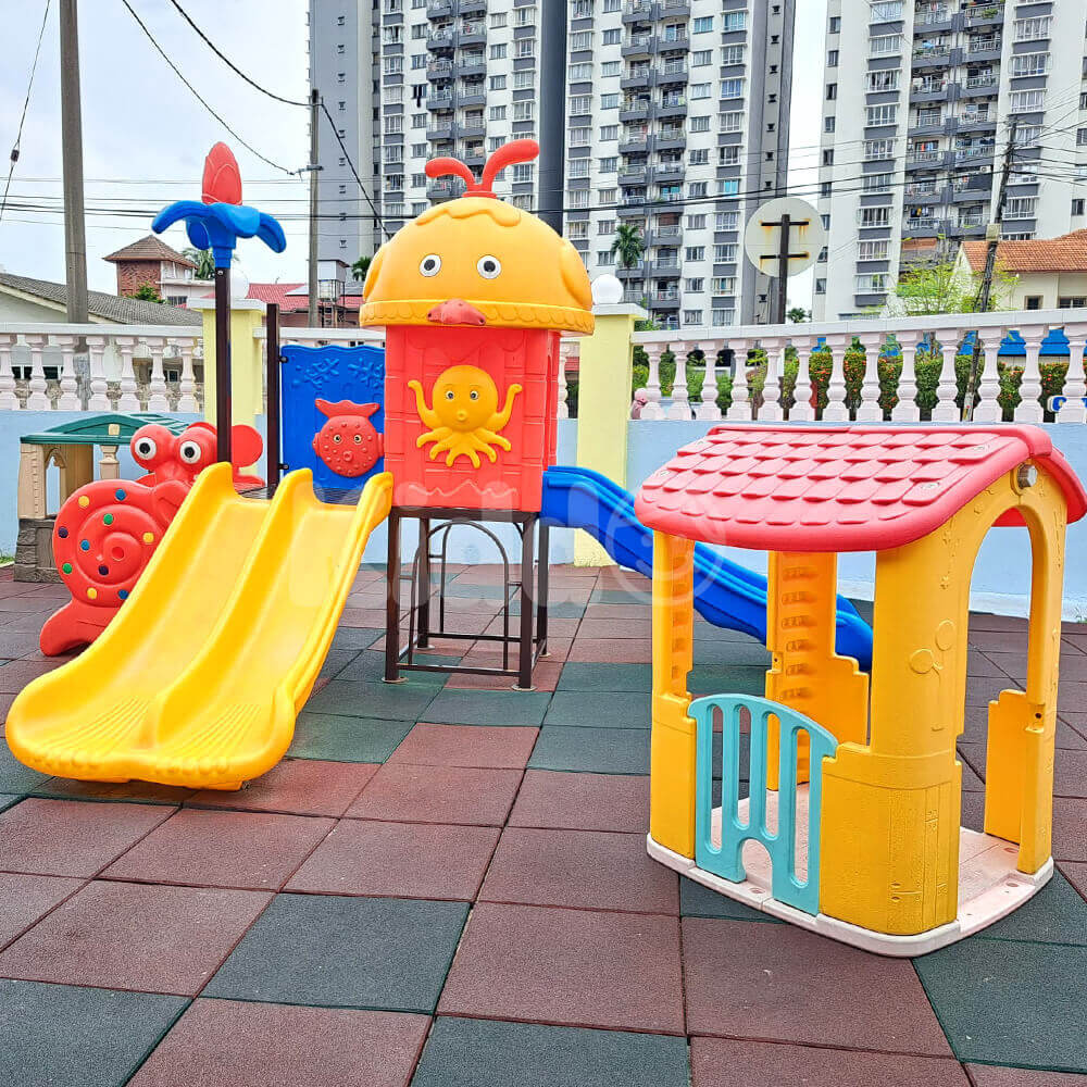 Thoughtfully built with age-appropriate equipments, including a low-rise slide on a large, soft rubber surface to ensure safety.