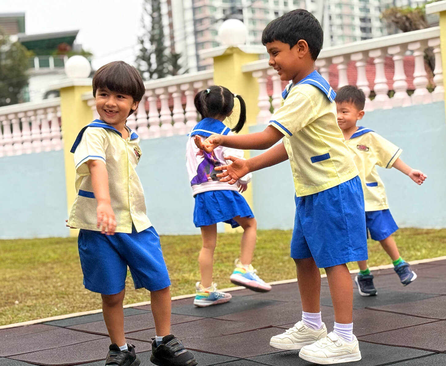 Learning and development are progressive from 1 year to another to help develop life skills and to give a strong foundation to embark on primary schooling.