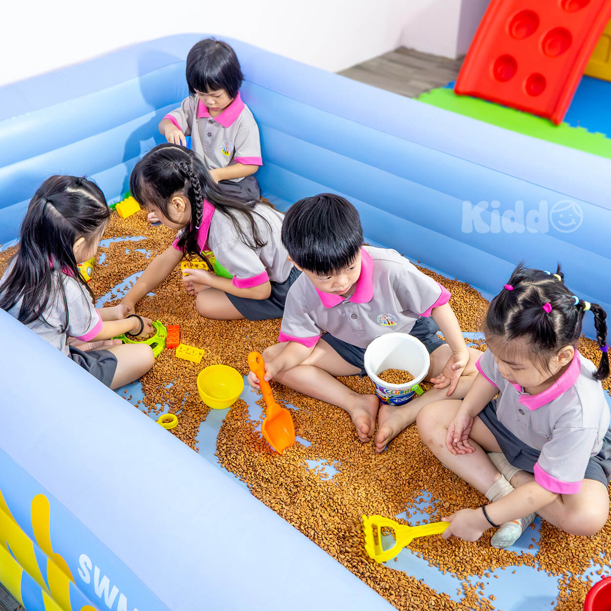 A sensory play area where children dig, build and explore.