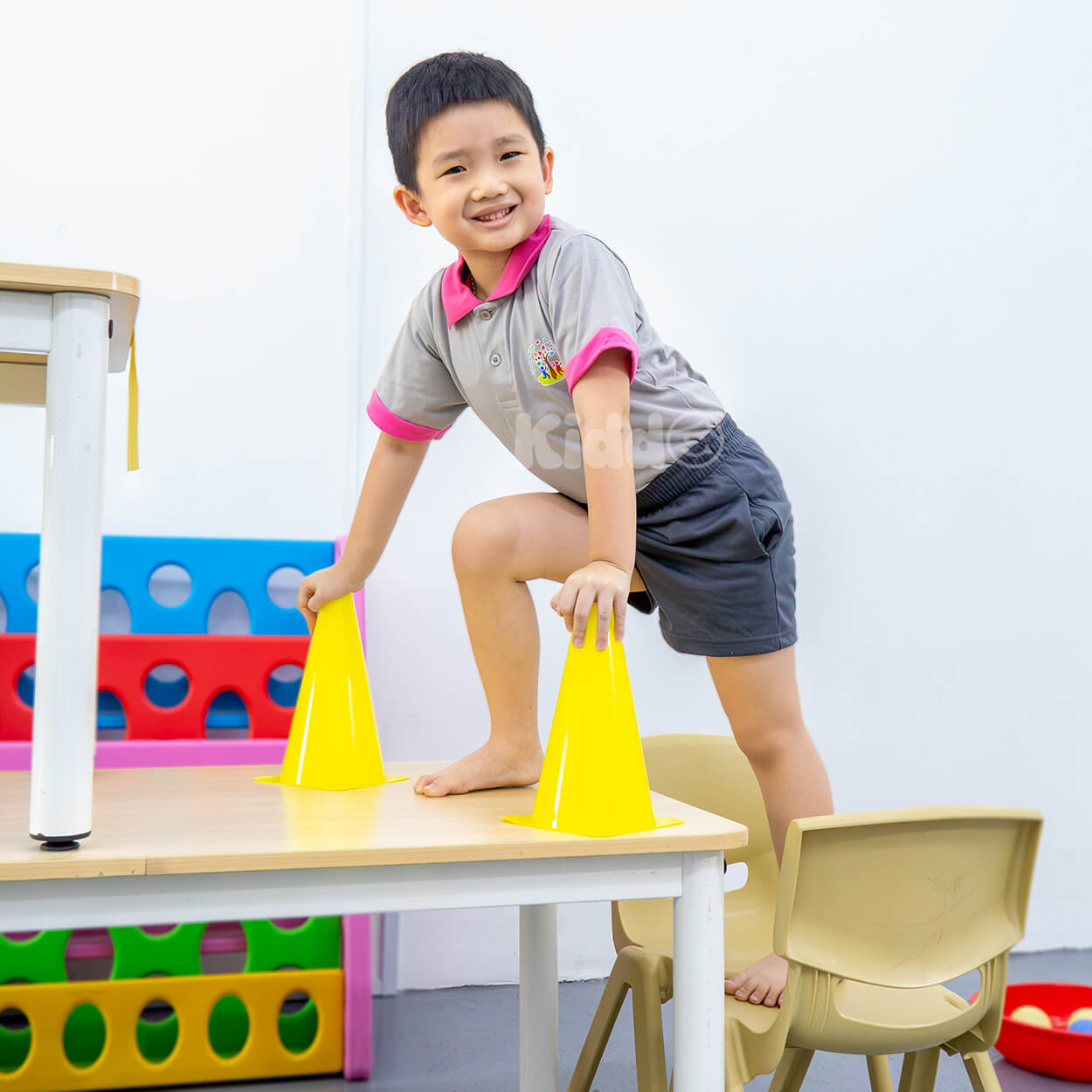 A compact area for active movement and strength-building play.