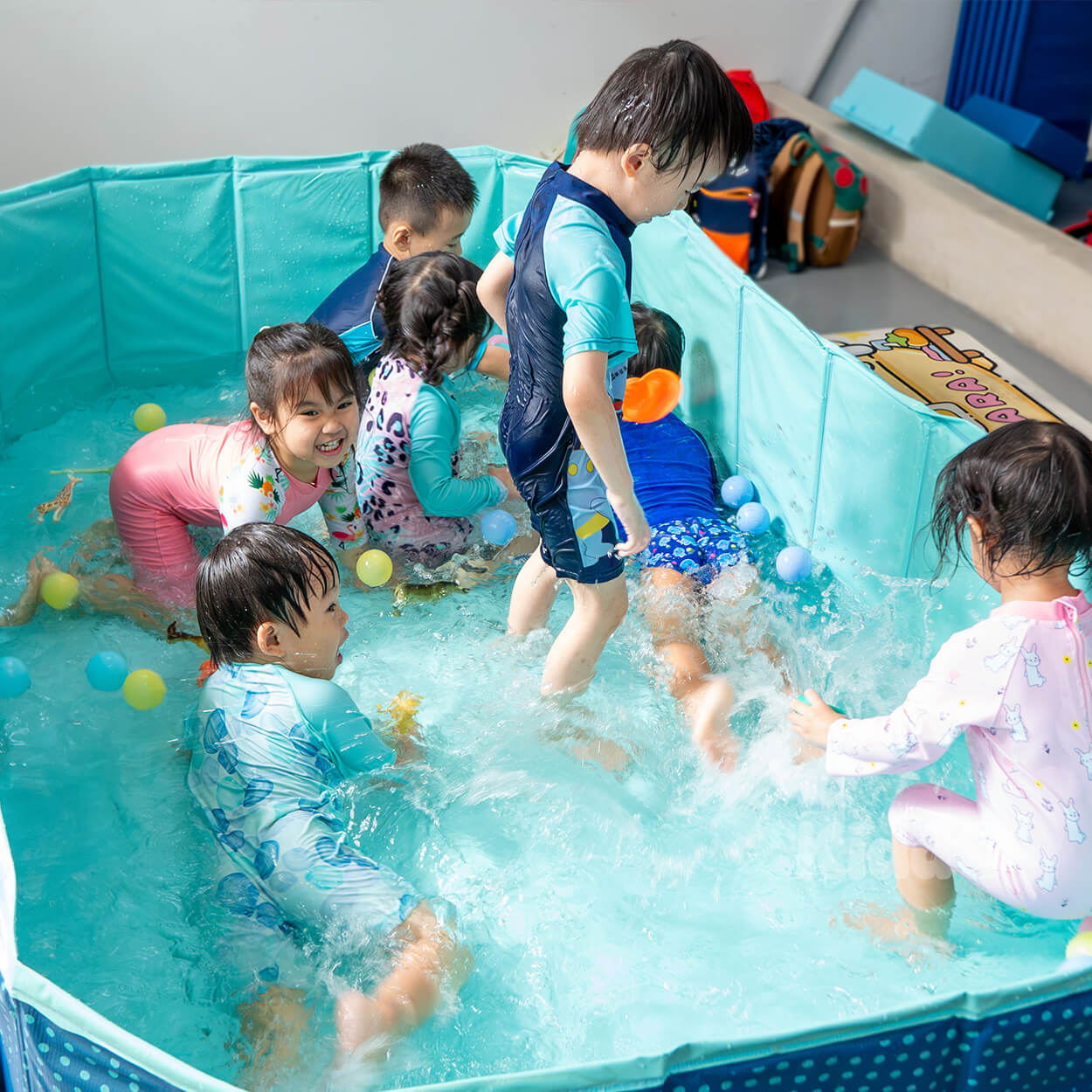 Exciting splash time that encourages coordination, motor skills, and joyful exploration.