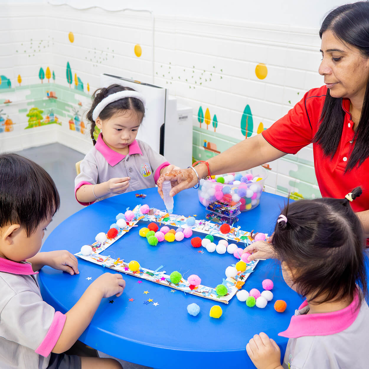 A cheerful wall that helps children feel a sense of belonging.